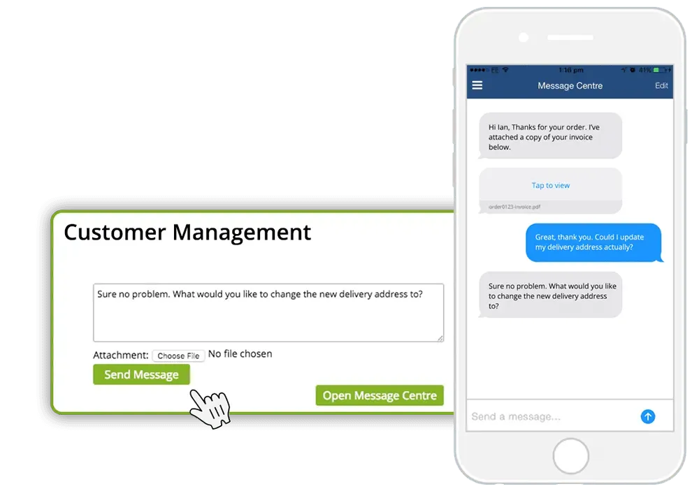 Communicate directly with individual app users with your own secure chat centre and send attachments.